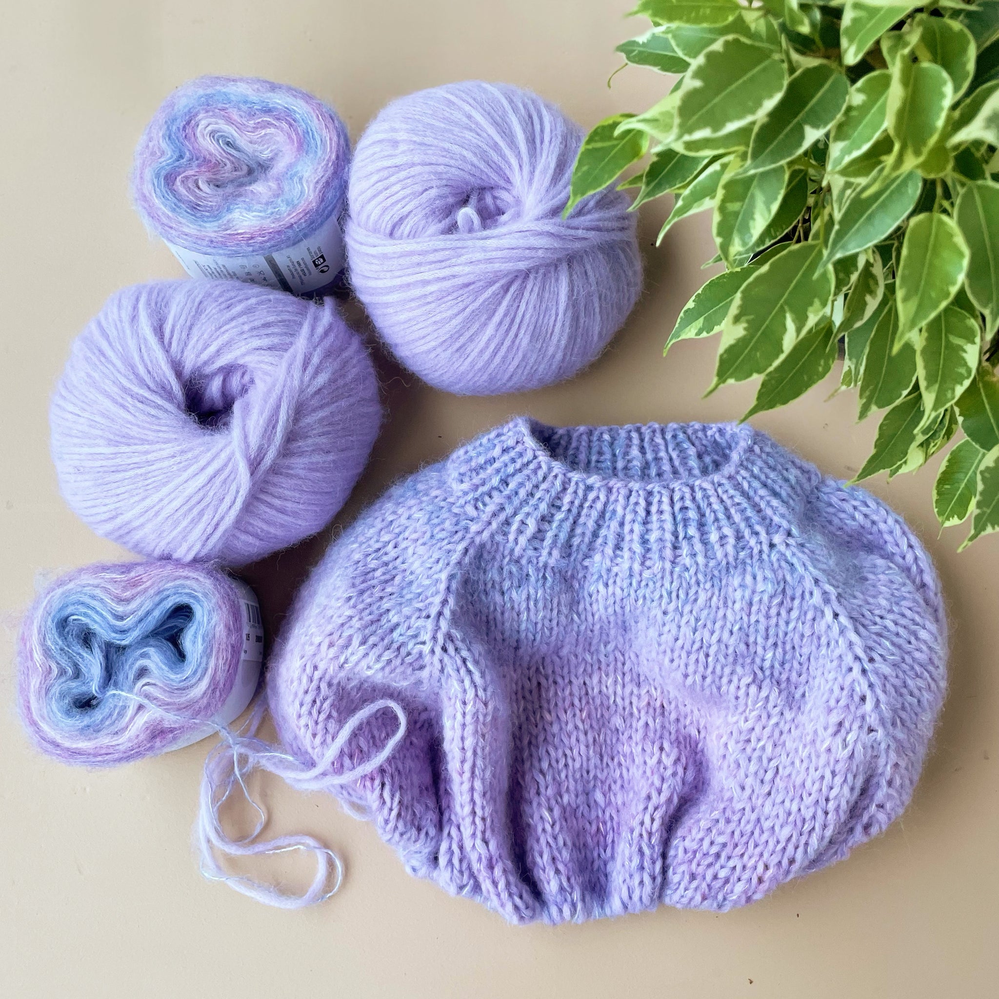 Garnforslag: Drops Air (50g=110m) og Trysil Lollipop (50gr=300m)